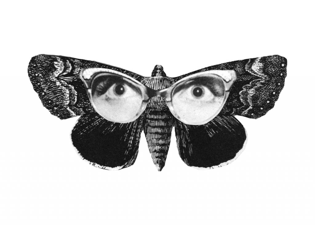 After a long day studying moths that look like they have eyes on their wings, an entomologist dreams of one staring back. This minimalist piece captures that space between science and symbolism, pairing insect anatomy with human awareness and dream logic.