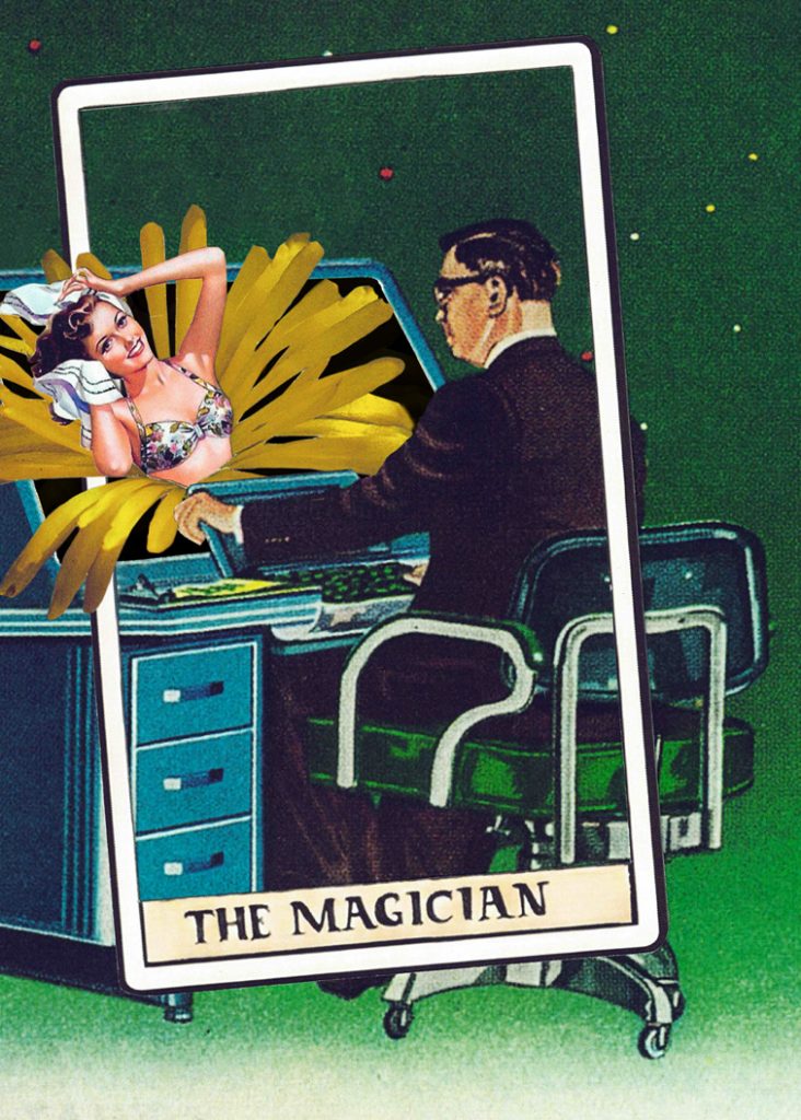Hand-cut collage meant to capture that particular kind of heartbreak where you're left on the shore, watching your hopes drift off in colorful balloons. Glamorous, untouchable, uninterested. Sometimes all you can do is sit with it. And then eventually, get back up.